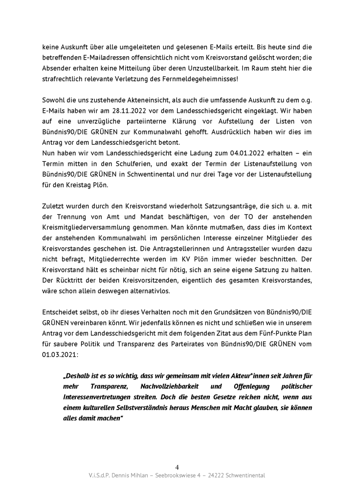 Ein in vielerlei Hinsicht ereignisreiches, aber auch nachdenklich stimmendes Jahr geht zu Ende. Gemeinsam möchten KLAR.GRÜN und WIR am Mittwoch, 14.12.22 um 19.30 Uhr zu einem gemütlichen Jahresausklang mit Plausch, Punsch und Gebäck in die Raisdorfer Räucherkate einladen. Wir wollen gemeinsam mit den Bürger*innen in Schwentinental darüber nachdenken was war, was im vergangenen Jahr vorangekommen ist , aber auch was hätte besser laufen können. Und wir wollen einen Ausblick wagen auf das kommende Jahr 2023, das allein durch die anstehende Kommunalwahl sicherlich ein Besonderes sein wird.